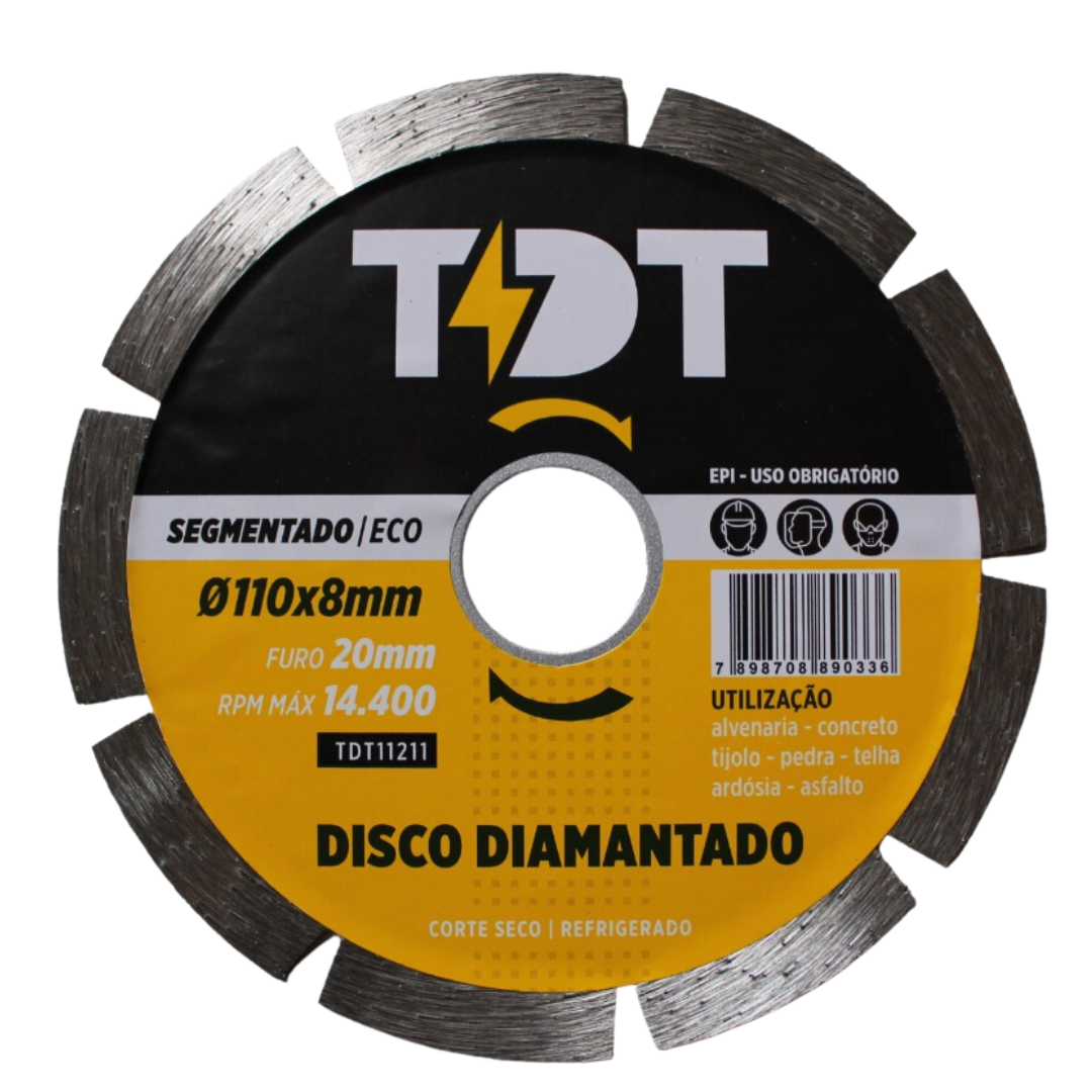 Discos segmentados são ideais para cortes retos a seco, porém, seu desempenho é ainda melhor quando utilizados com refrigeração. Por conta de sua segmentação, esse disco apresenta uma refrigeração melhor.