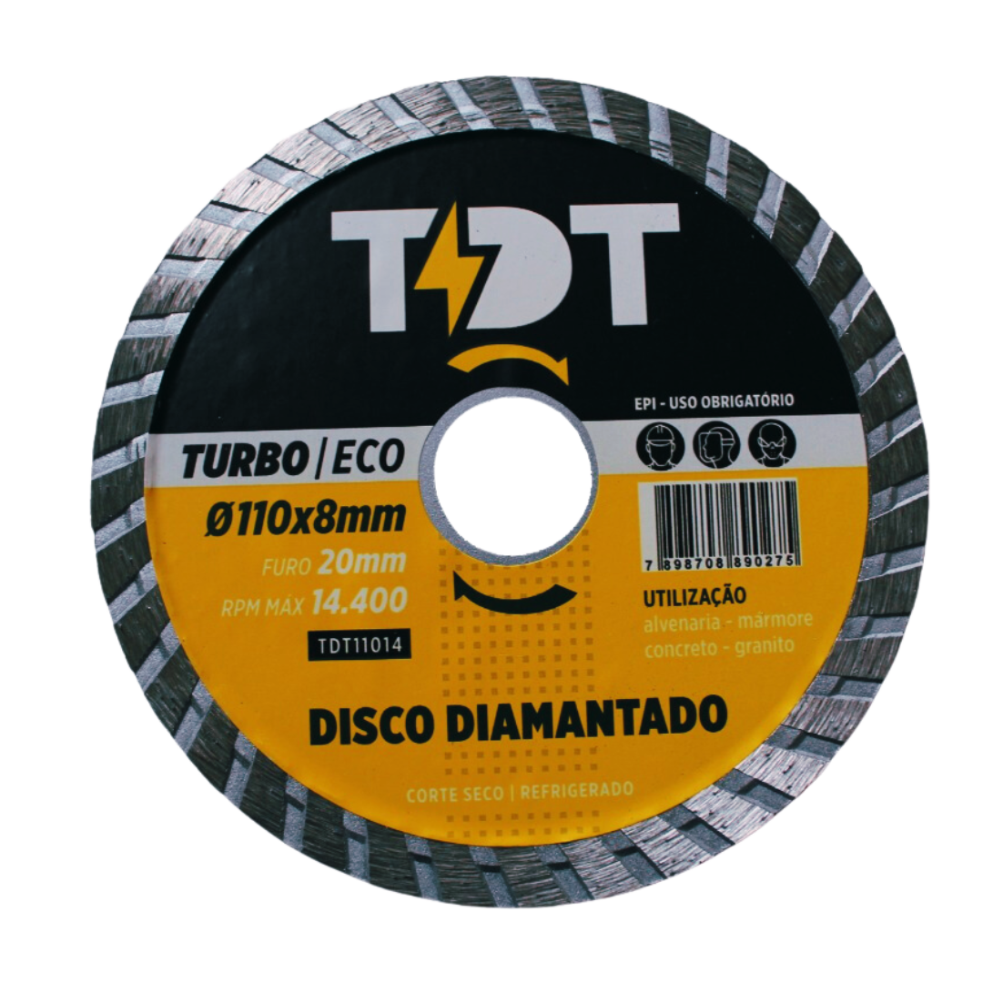 Discos turbo para cortes retos podendo ser utilizado tanto a seco como com refrigeração. Pode ser usado para Mármore, Granito e Concreto com a possibilidade de personalização da sua marca no disco.
